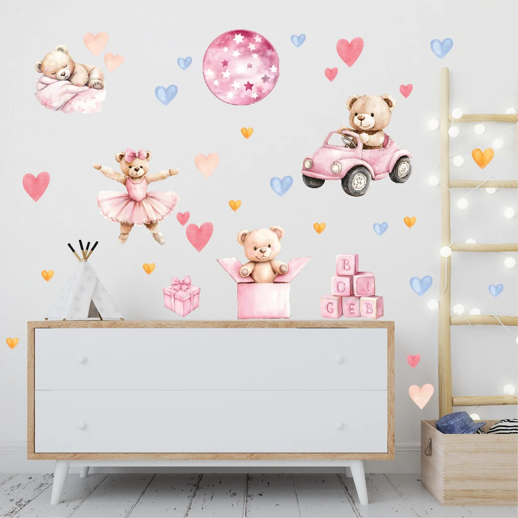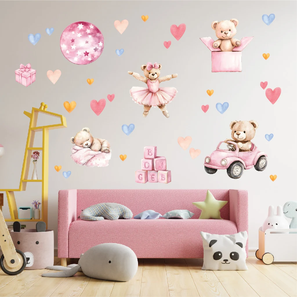 Creează o lume magică pentru copilul tău cu autocolante perete ursulet roz!