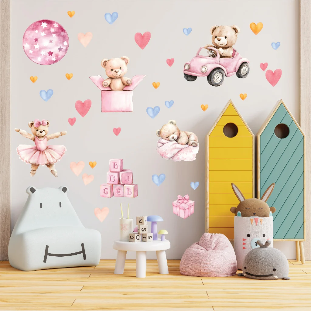 Autocolante perete ursulet roz: fiecare sticker e o poveste spusă cu zâmbetul