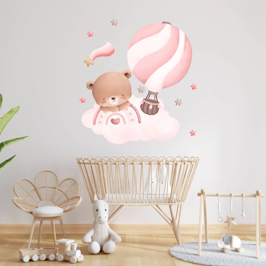 Sticker Perete Copii Ursulet Roz: acest urs adorabil va deveni rapid favoritul micuței tale.