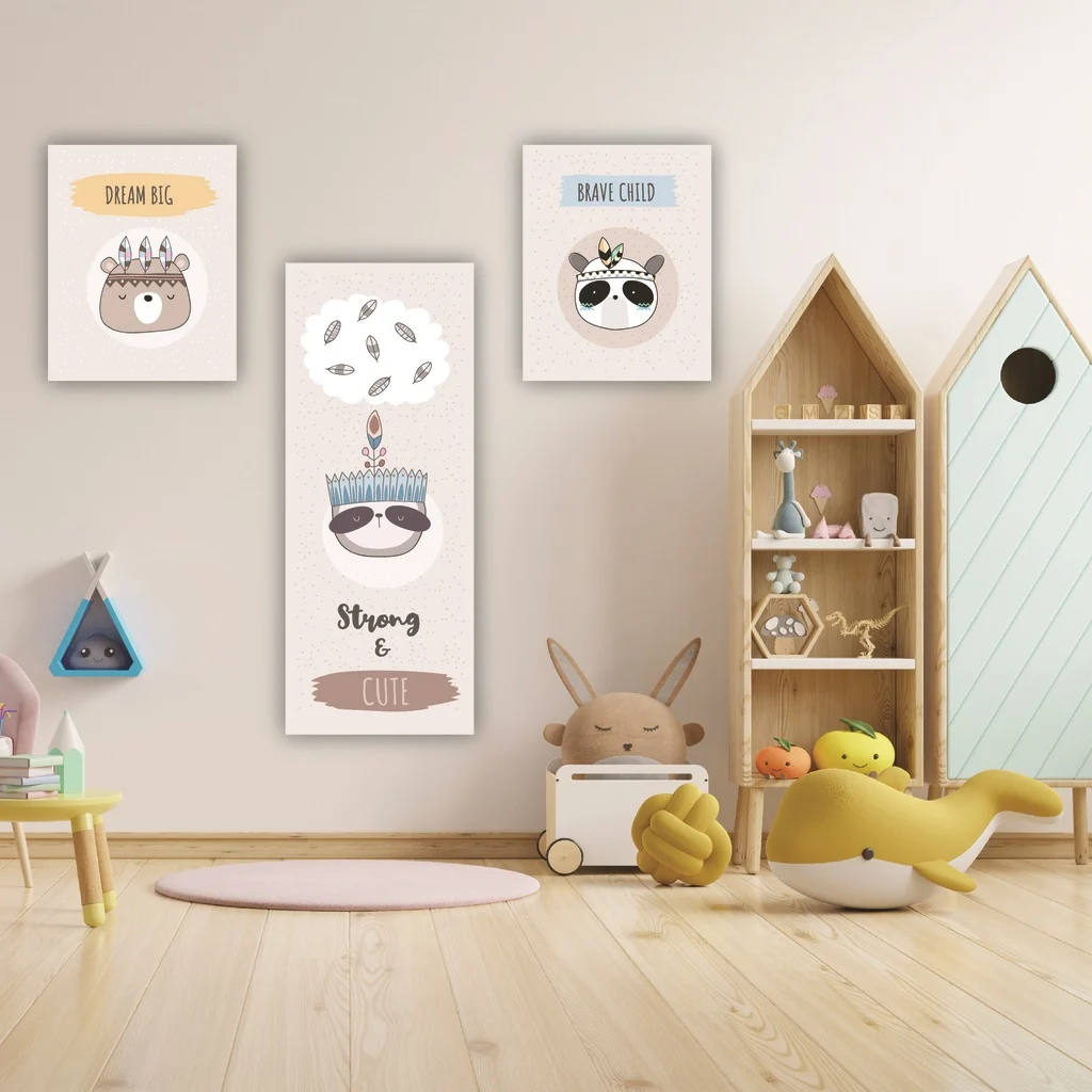 Schimbă atmosfera în camera micuțului tău cu un Tablouri Canvas Copii Set Boho!