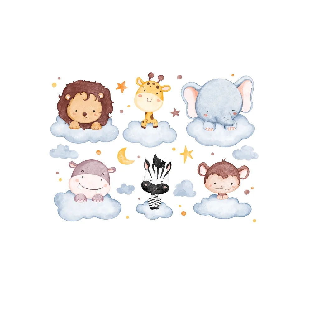 Sticker camera copii cu animale si norisori, adorabil, îmbină lumea minunată a animalelor cu farmecul norișorilor. Această ilustrație fermecătoare va aduce un zâmbet pe fața oricui și va transforma orice cameră într-un loc plin de bucurie și imaginație.