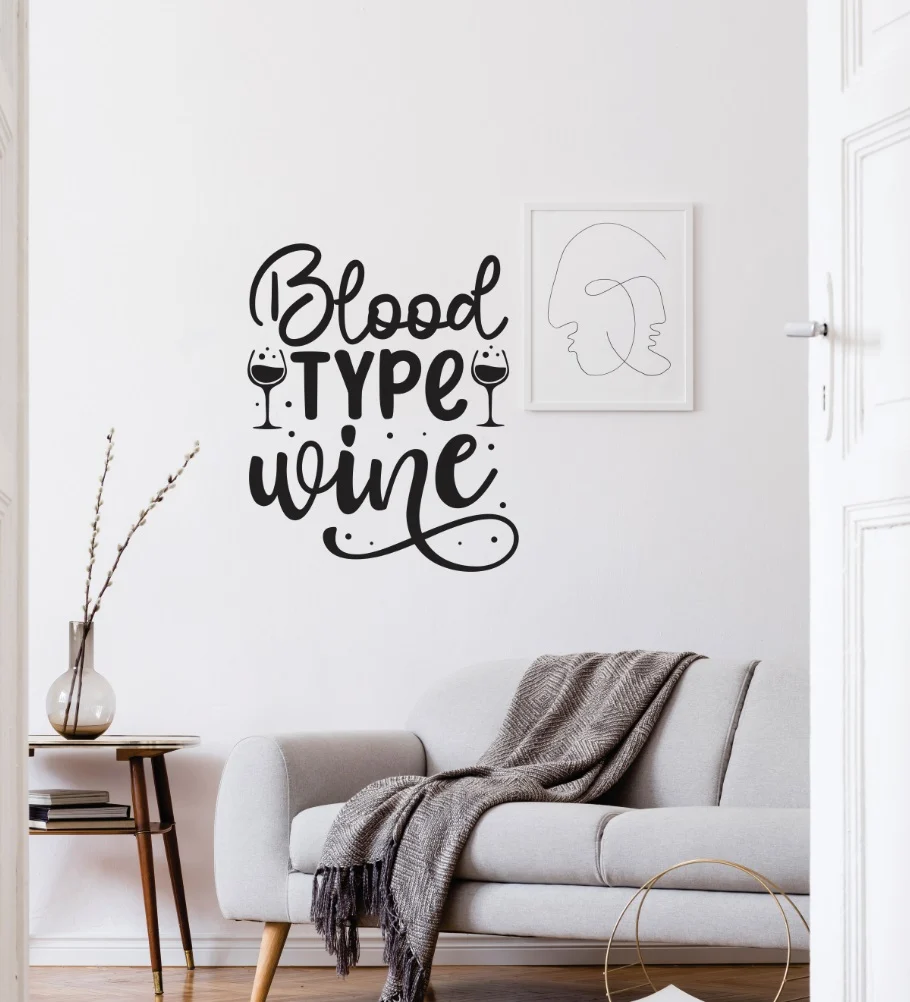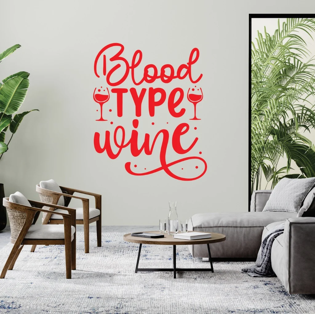Adu un strop de veselie iubitorilor de vin cu acest Sticker Perete Blood Type. Un accent plin de umor pentru casa ta. Ideal pentru bucătărie sau colțul de relaxare.