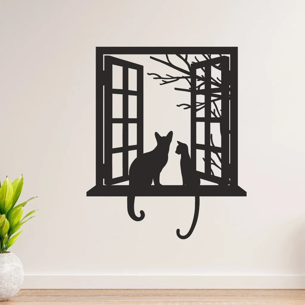 Sticker Perete Cats Window, este ideal pentru a adăuga un element artistic și relaxant în orice cameră.