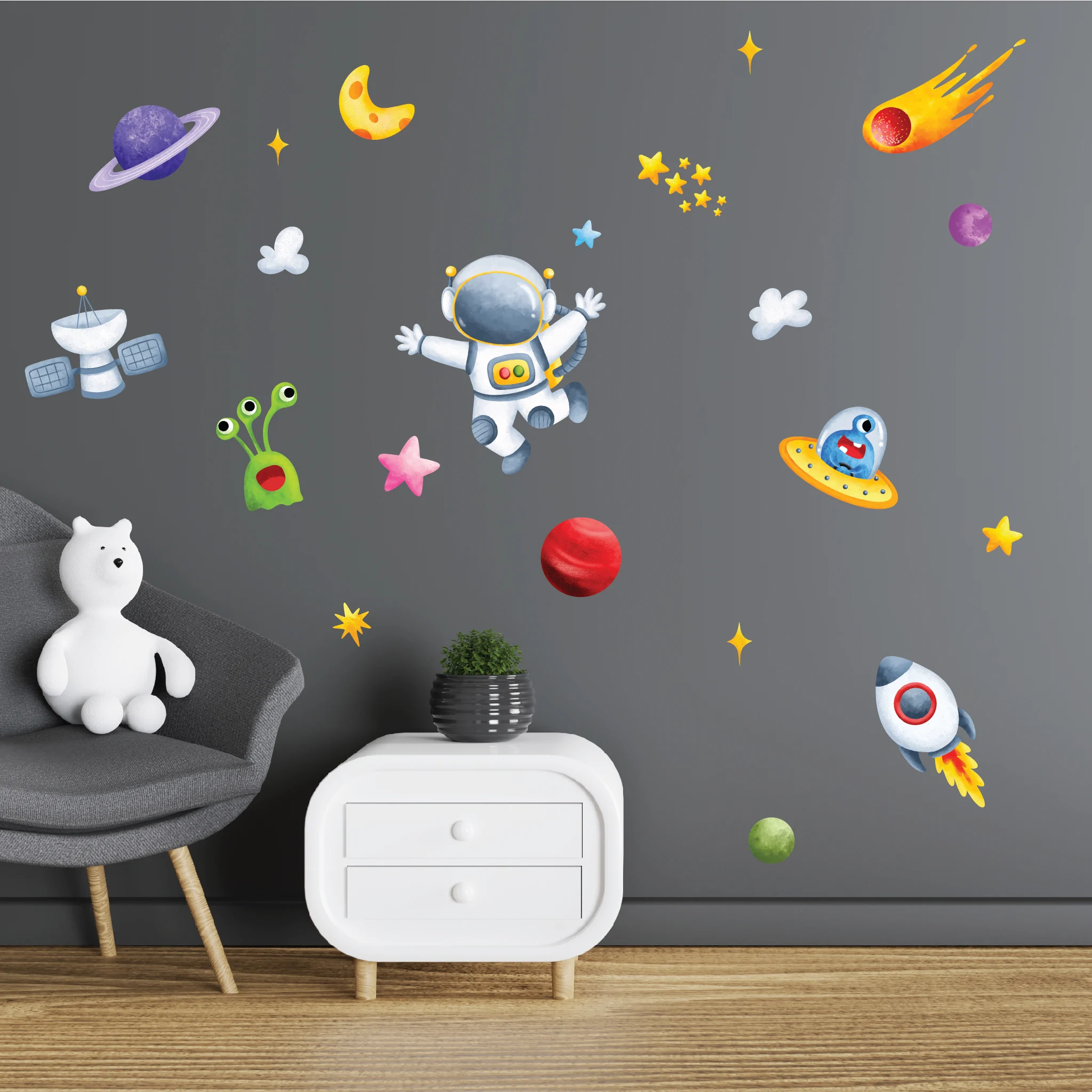 Sticker Perete Copii Astronaut ca decor de fundal, micuții exploratori se vor simți ca niște adevărați eroi ai cosmosului.