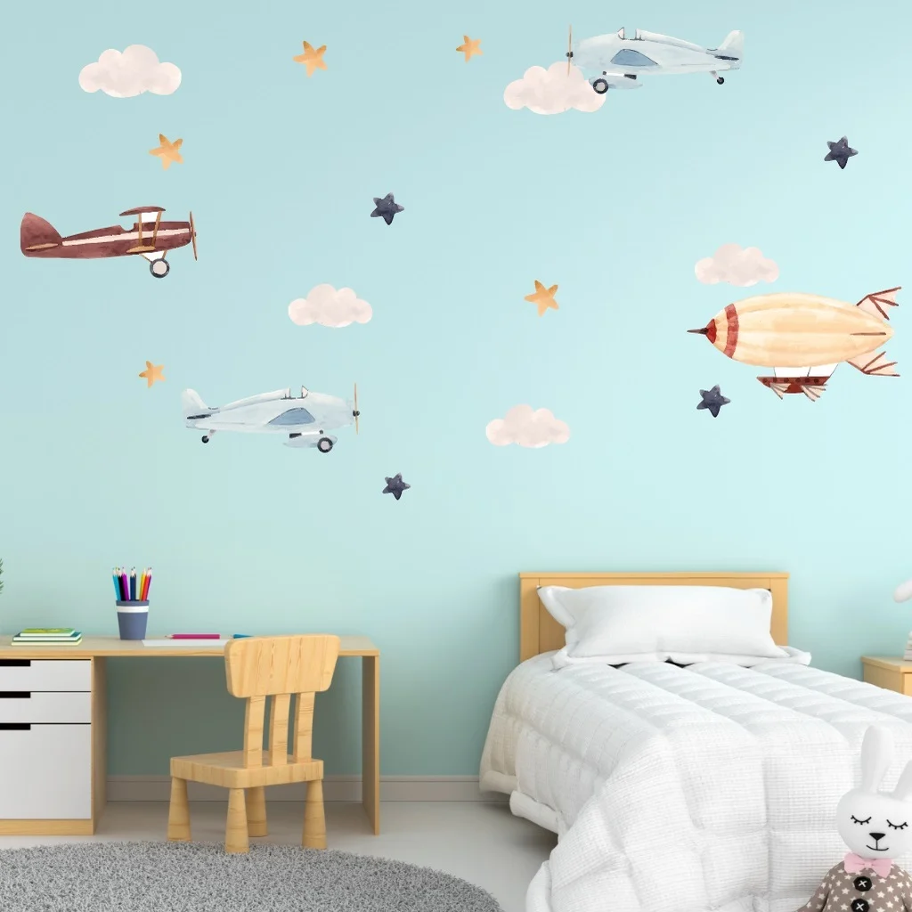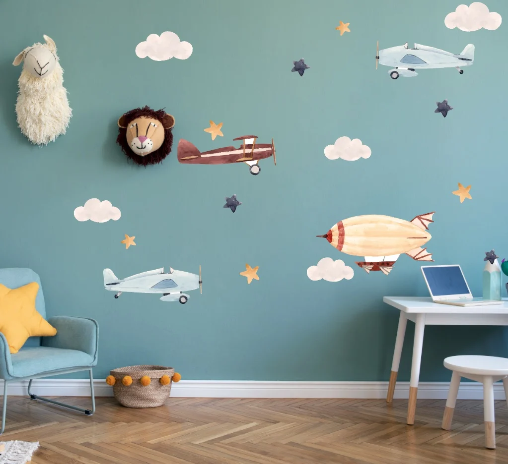 Sticker Perete Copii Avioane: adaugă doar culoare și un sentiment de libertate în spațiul de joacă sau odihnă al copiilor.