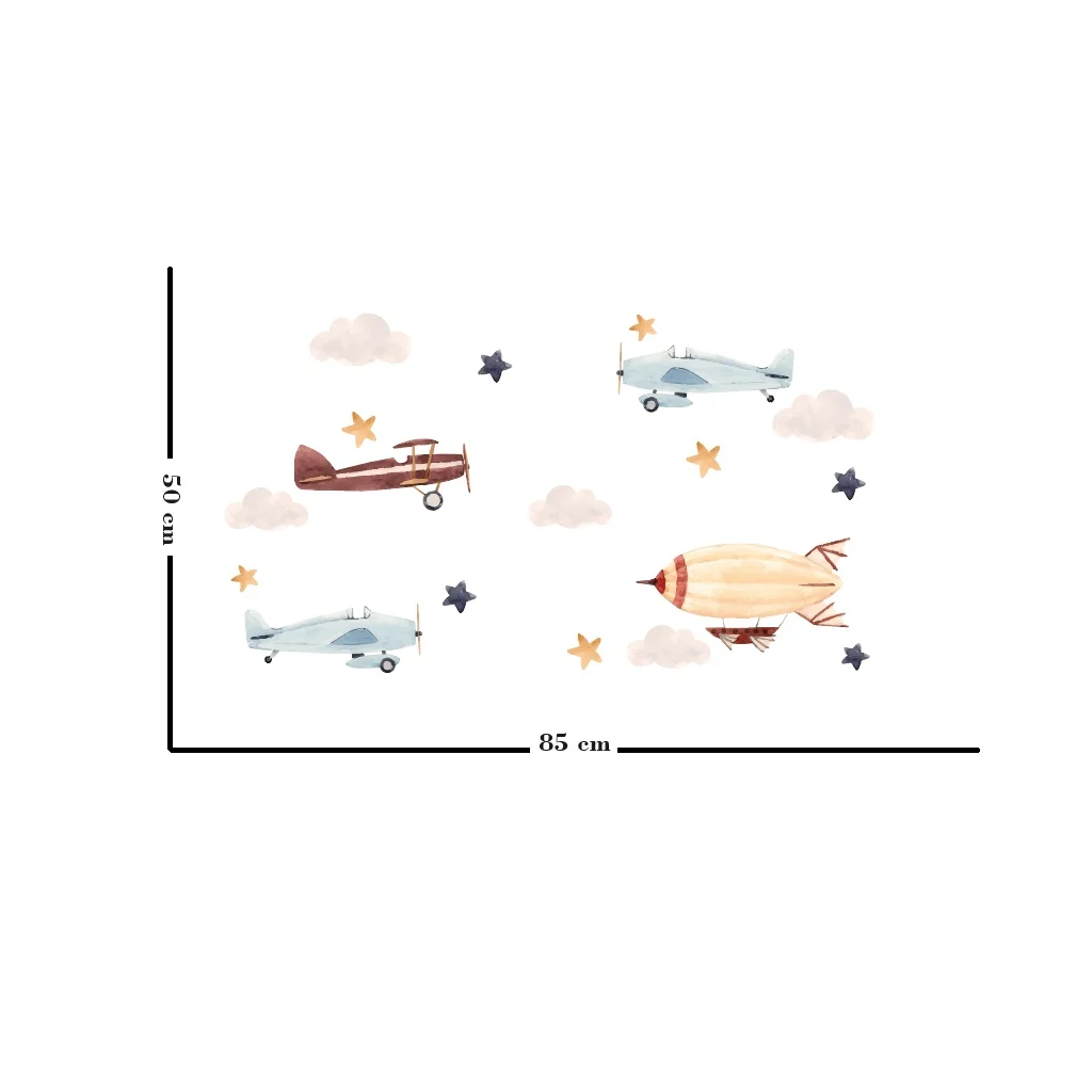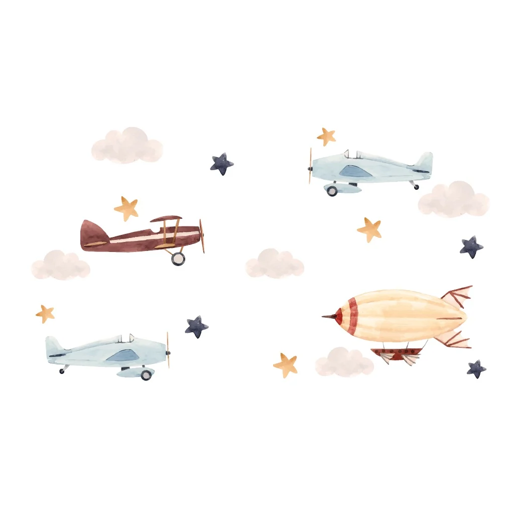 Transformați camera copilului într-un cer infinit cu acest stickere avioane. Jucăuș și vibrant, aduce o atmosferă de bucurie și curiozitate celor mici.