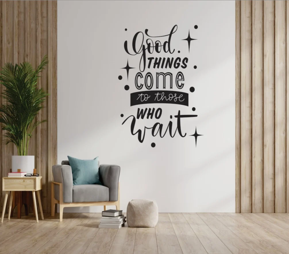 Cultivă răbdare cu Sticker Perete Good Things. Un mesaj clasic, perfect pentru orice spațiu.