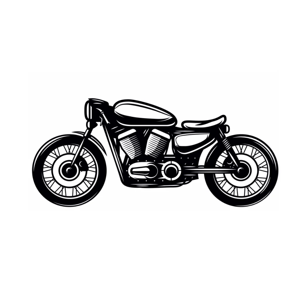 Silueta motocicletei este redată într-un mod elegant și modern, capturând esența și estetica clasică a acestui vehicul.