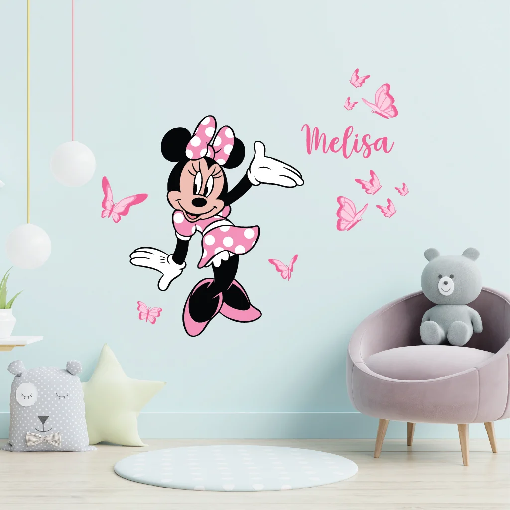 Sticker perete personalizat Minnie Mouse: este perfect pentru dormitor, camera de joacă sau chiar și hol.