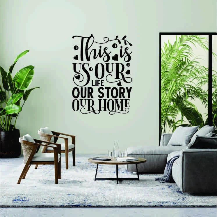 Sticker perete This is Us: reflectă esența căminului vostru – un spațiu plin de amintiri și povestiri dragi.