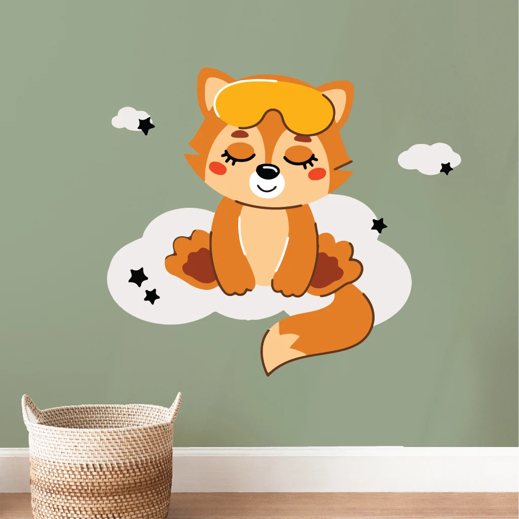 Ilustrând o vulpe zâmbitoare și nori pufoși, acest decal adorabil adaugă o notă de veselie și joc în spațiul micuțului tău.