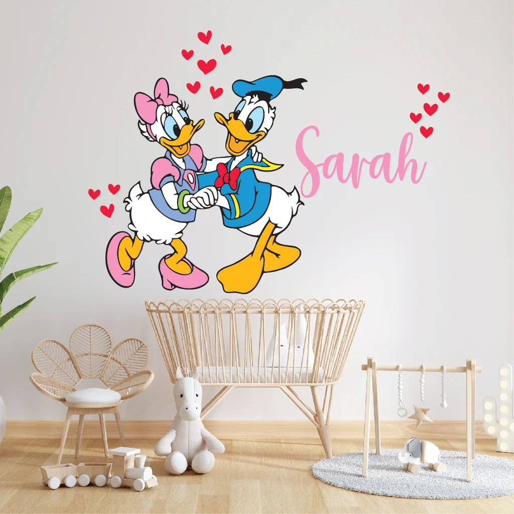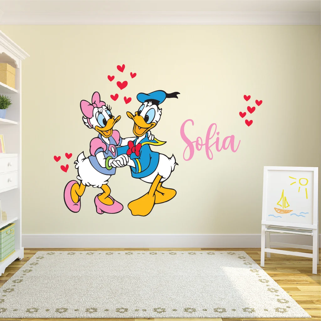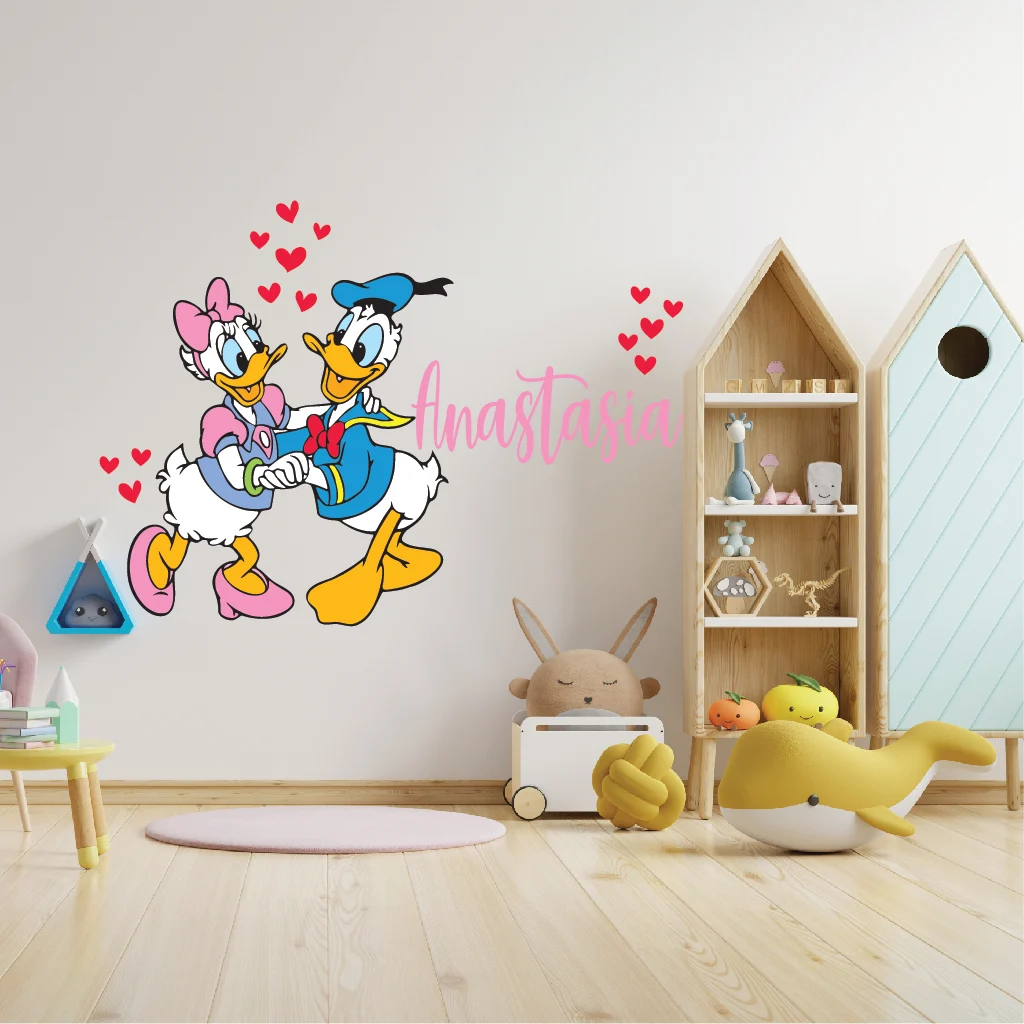 Sticker personalizat Donald si Daisy: este perfect pentru dormitor, camera de joacă sau chiar și hol.