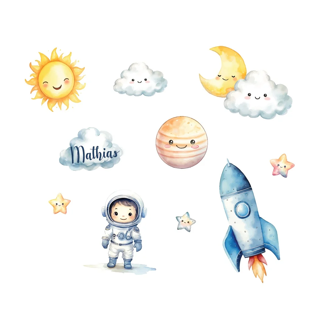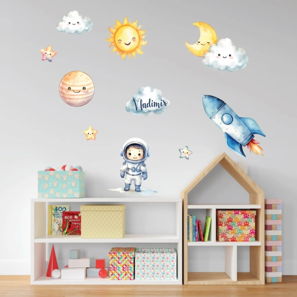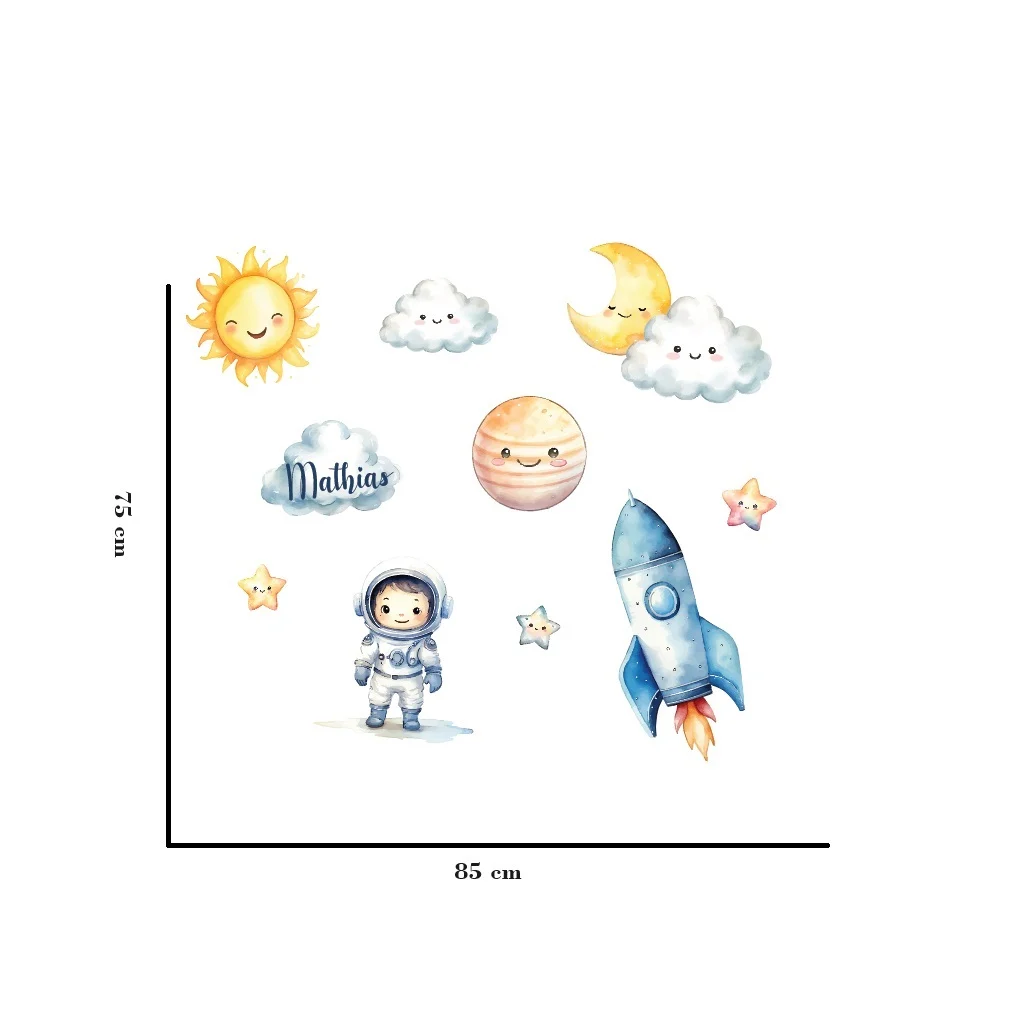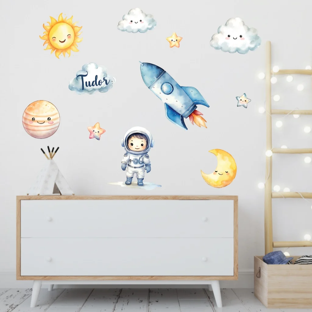 Stricker personalizat copii In Spatiu: tematica spațială este excelentă pentru a inspira visuri mari și pentru a crea o atmosferă plină de magie și explorare.