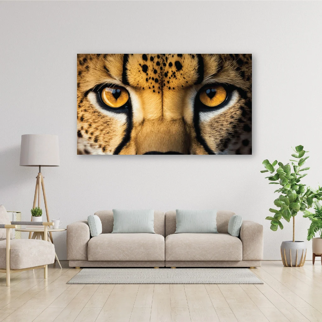 Adaugă intensitate, forță și energie vizuală decorului tău cu acest tablou canvas ghepard, surprins în detaliu realist și culori impresionante.